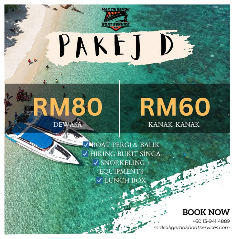 The snorkeling experience was unforgettable! Highly recommend Makcik Gemok Boat Services.
