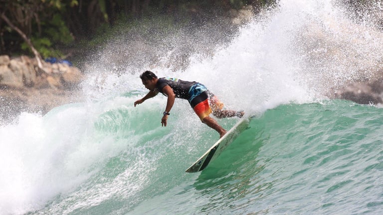Pick up your surfboard and ride the unique waves at Kapas Island